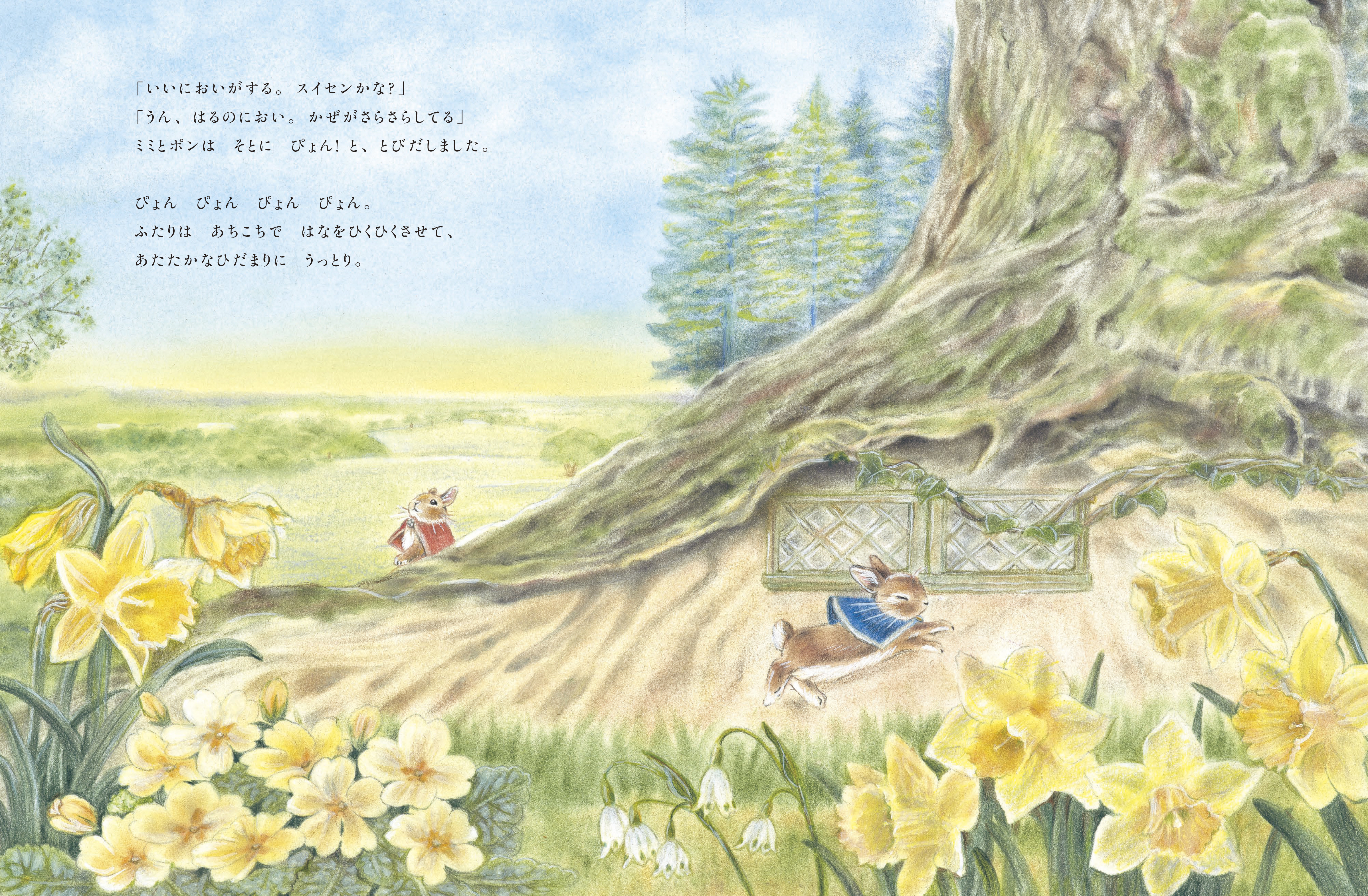 さむいふゆが おわりをつげて、うさぎのもりに はるがやってきました。