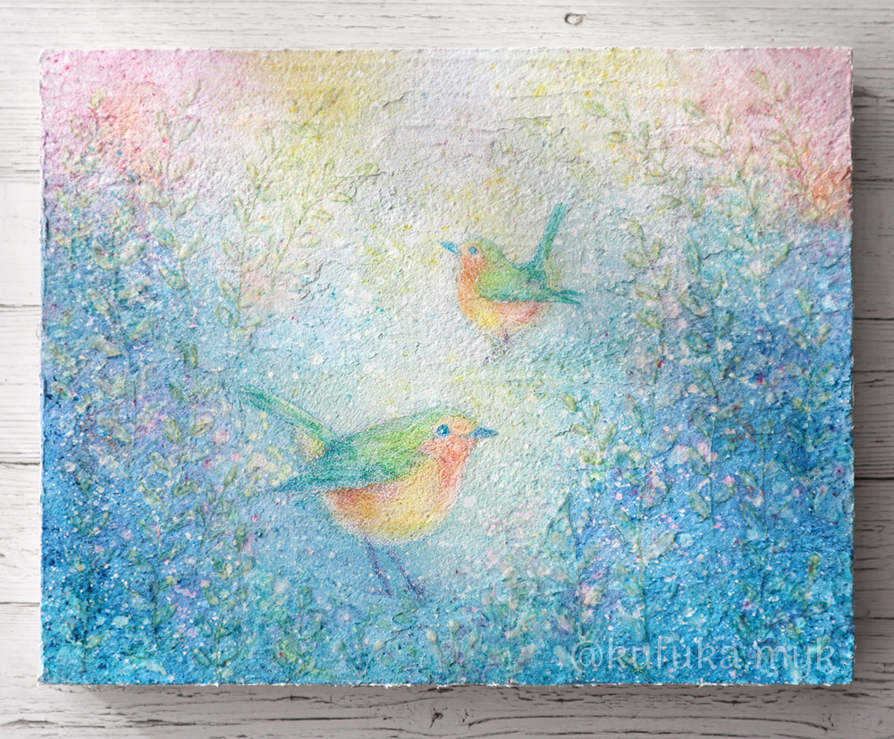 東京都在住の水彩作家。色の粒が見える独特のブレンディングが持ち味。優しく豊かなその色彩は、水彩色鉛筆を粉にして使うことで生まれます。